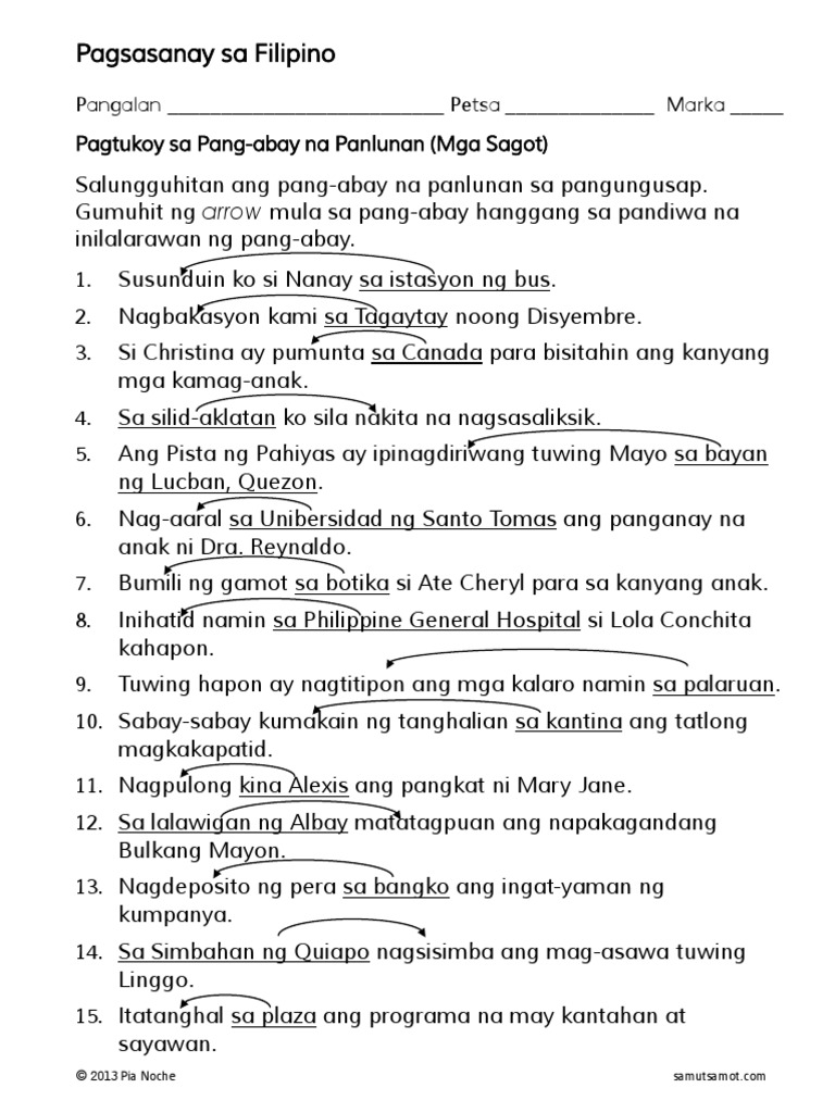 Worksheet In Filipino Pang Abay. 1 question 5halimbawa ng pangungusap na pang abay na panlunan salungguhitan ang panlunan. Mga halimbawa ng pangalang pantangi na may larawan.